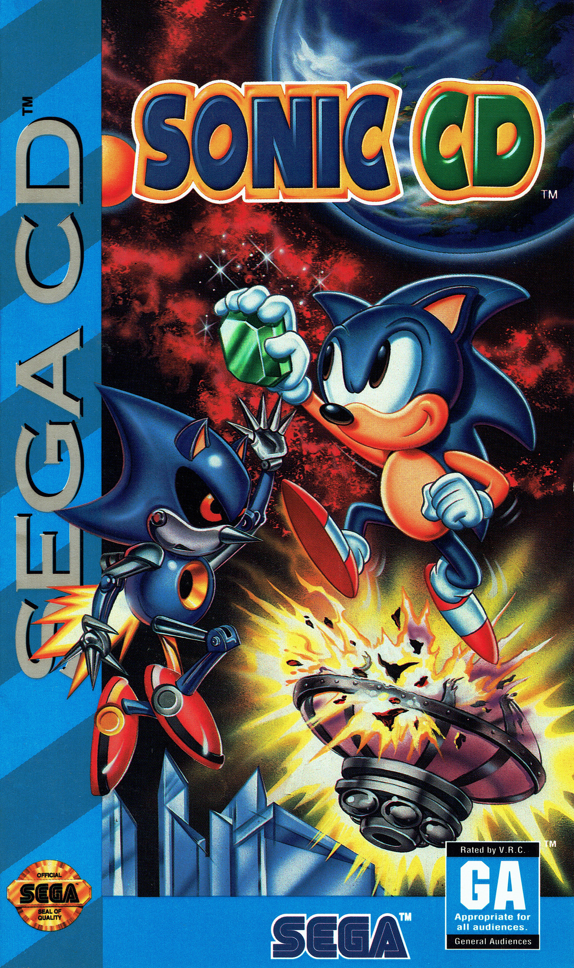 The level design is not really good, and I think the reason is because you have to explore these levels to find machines you break. How it works is you hit a sign that says PAST, and then you run at high speeds for a short period of time, and then you time travel. You then have to explore the level to find machines to break. Breaking these machines gets you a good future. In Sonic CD, there are three time periods. The present, past, and future. There are also two types of futures. The good future and bad future. You want to get good futures (clearly). You can get a good ending by either breaking all machines in the past, or getting things called time stones (the chaos emeralds of this game). There are 7 time stones total, and getting all of them automatically grant you good futures for every level in the game, even the ones you originally got a bad future on.